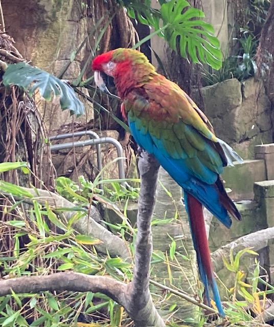 Here and there we saw birds and animals: parrots, colorful birds, monkeys and furry bats!