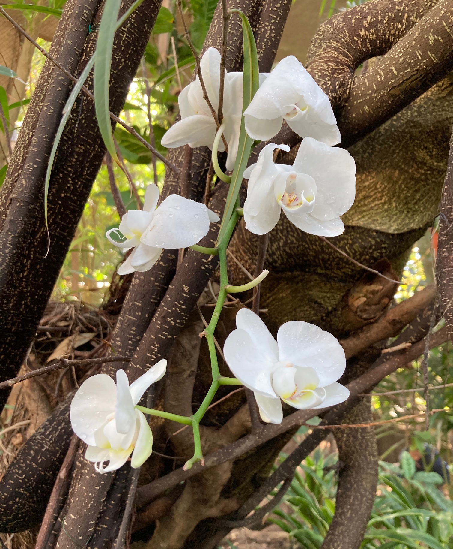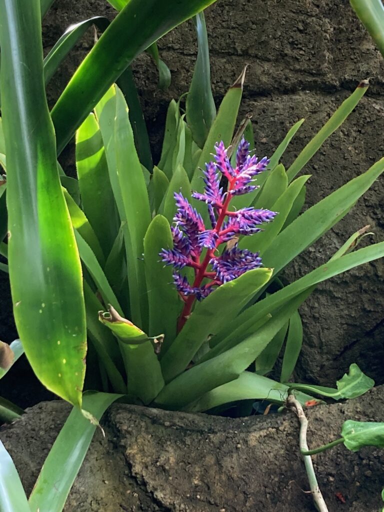 We visited Moody Gardens that holds a rainforest in one glass pyramid and an aquarium in another. We saw bright and colorful flowers in the rainforest.